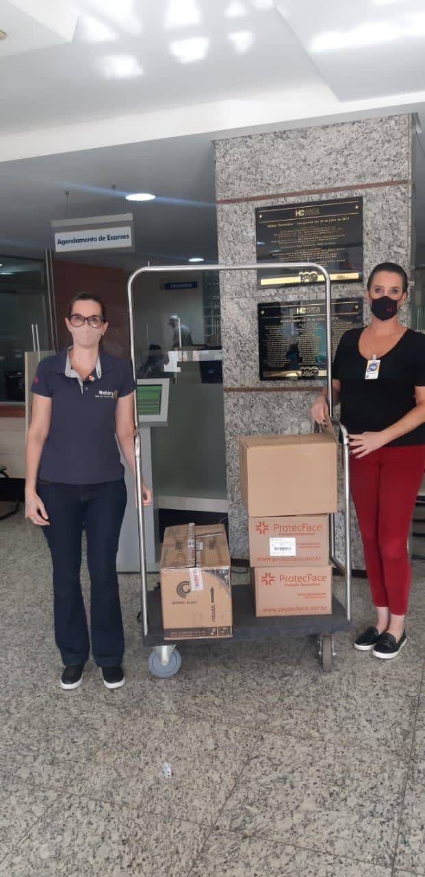 O Rotary Club de Passo Fundo realizou, nesta tarde, a doação de 220 máscaras modelo N95 ao Hospital de Clínicas de Passo Fundo. A verba para a aquisição do material foi remetida pelo Distrito 4700 de Rotary Internacional para todos os clubes da região, com o propósito de ser empregada em ações de enfrentamento à Covid-19. A entrega foi feita pelas mãos da presidente Lisiane Sperotto Grando, e foram doados também outros materiais como soro fisiológico, macacões impermeáveis e abaixadores de língua.