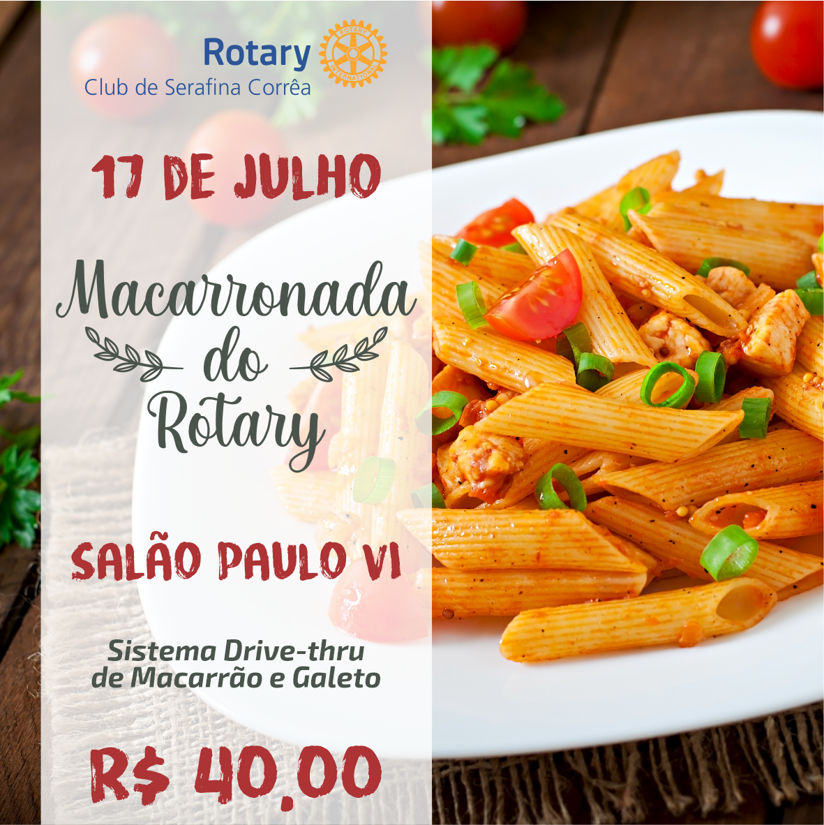 O Rotary Club de Serafina Corrêa promoverá mais um evento drive-thru! Uma bela macarronada acompanhada de frango assado!