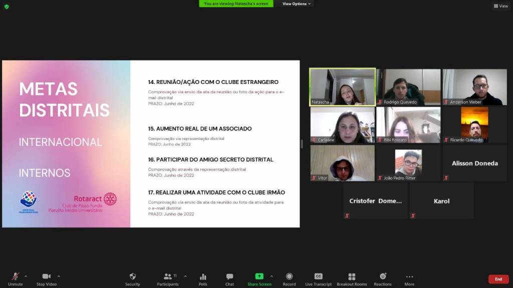 Durante a realização da segunda reunião ordinária da gestão 2021-22 o Rotaract Club de Passo Fundo Planalto Médio Universitário realizou a posse do companheiro Anderson Weber e a apresentação do planejamento da gestão.