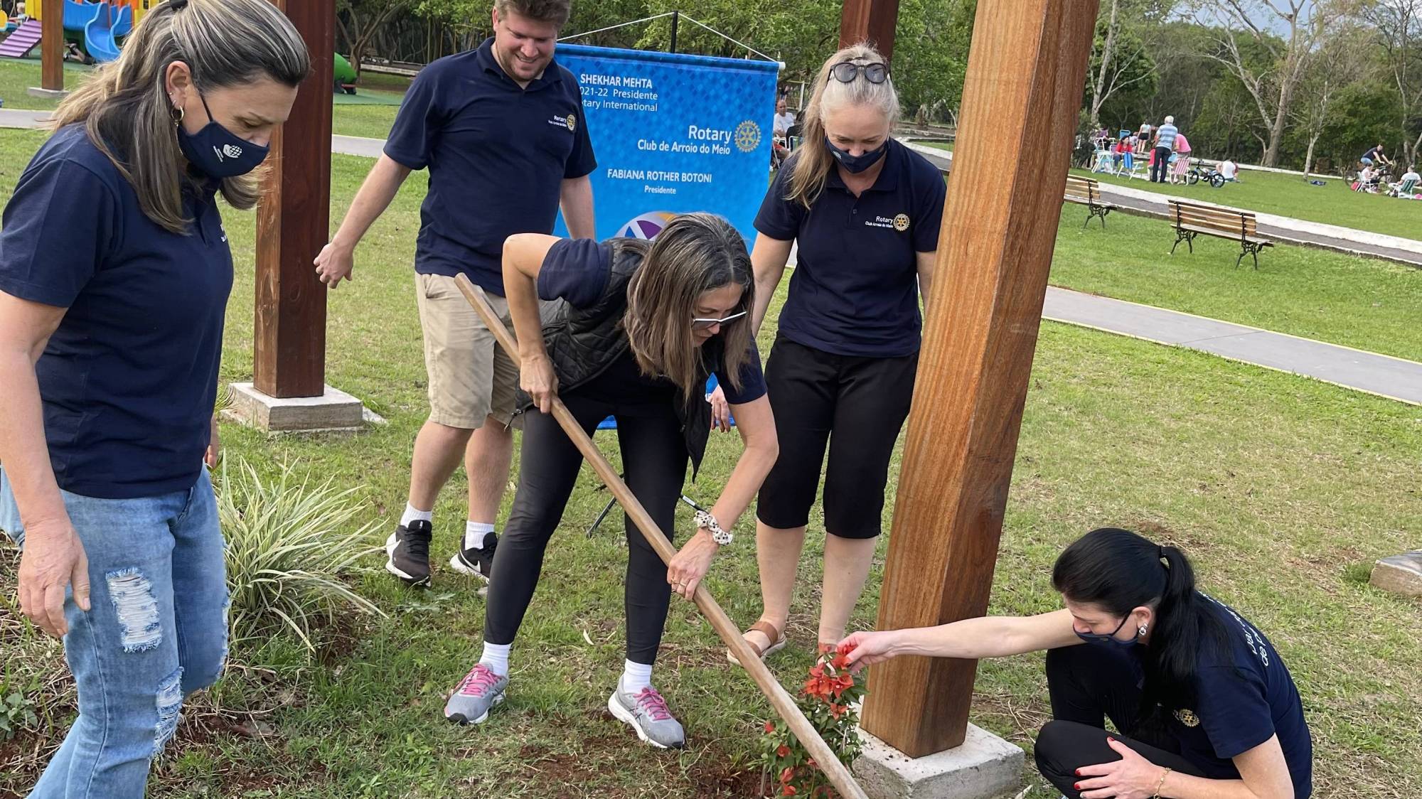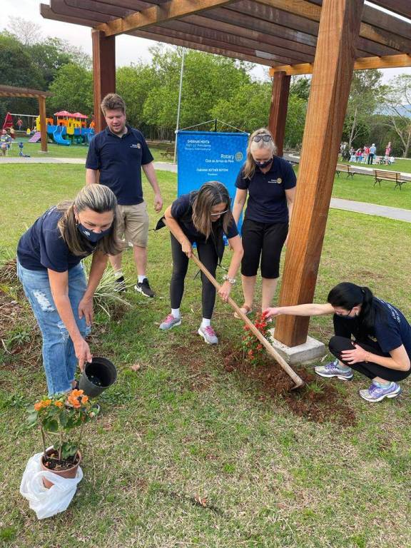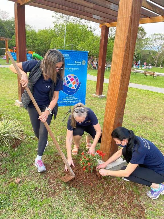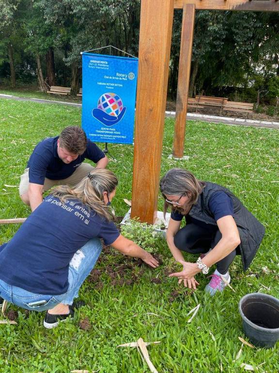 Ontem, dia 20 de setembro, companheiros do Rotary de Arroio do Meio, foram plantar, em dois pergolados instalados na Área de Lazer da nossa cidade, mudas de Três Marias.