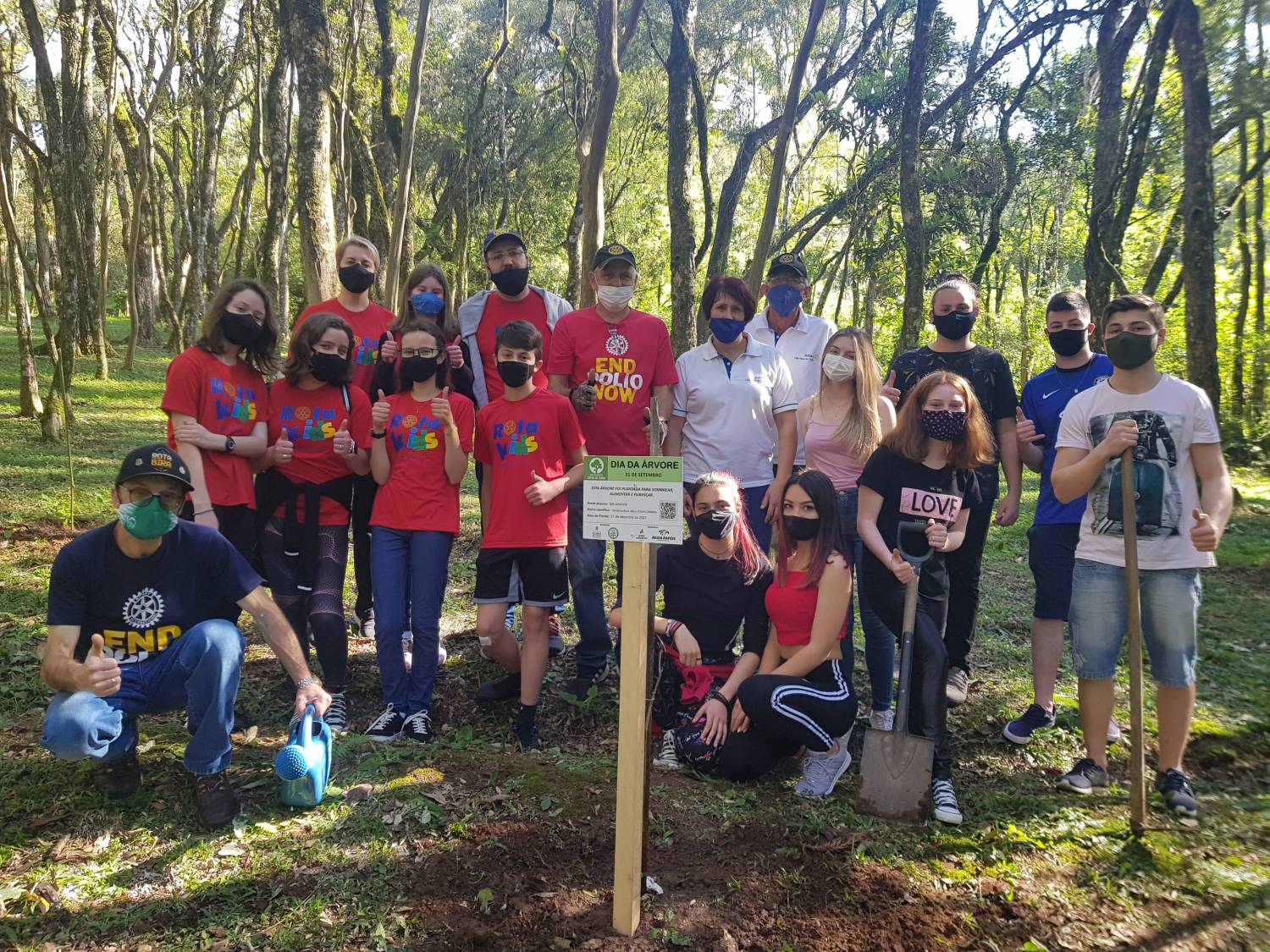Família Rotária de Flores da Cunha, presenteando a natureza com o plantio de árvores na Sociedade Recreativa Aquarius