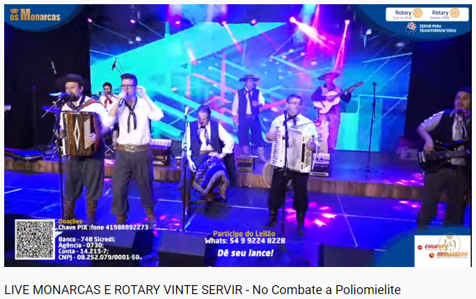 Hoje, dia 24, Dia Mundial de Combate à Pólio, o Rotary Club de Serafina Corrêa está ligado na live Vinte Servir com os Monarcas. Um baita show em prol a erradicação da paralisia infantil.