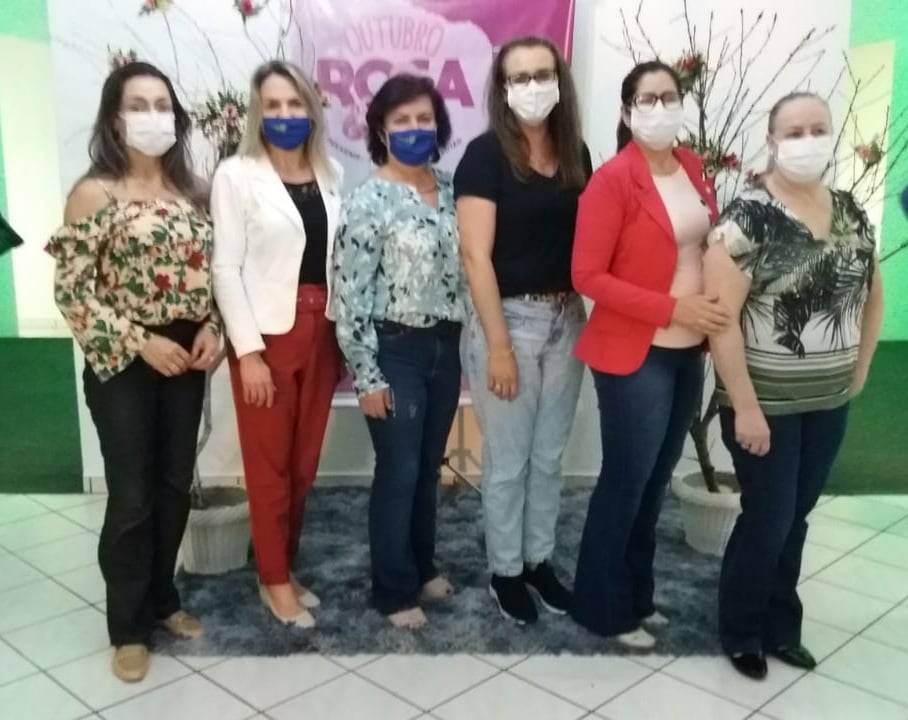 Companheiras representando o Rotary Clube Tapejara na abertura do Outubro Rosa no Centro Cultural.