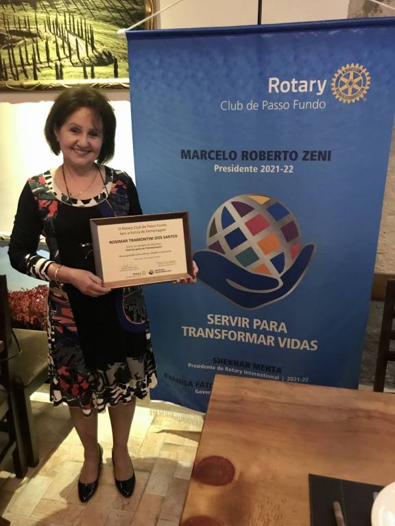 Entrega de quadro de homenagem as professoras Ana Maria Brandão Racktz, Maria do Carmo Castanho Fernandes e Rosimar Tramontini dos Santos