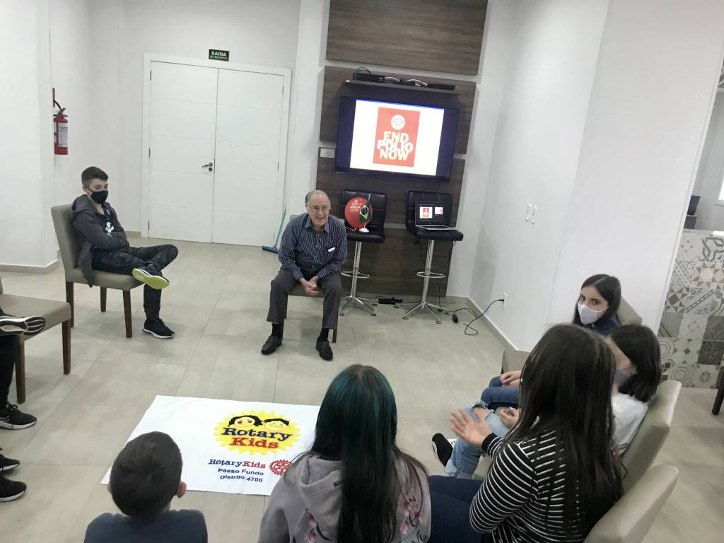 No dia 23/10 realizou-se encontro do Rotary Kids Passo Fundo com o tema Pólio Plus . O rotariano e bioquímico Sérigio Benvegnú conversou com as criancas sobre vírus e a importancia das vacinas e a rotariana Heloísa Ernst mostrou o que é e como funciona o programa Pólio Plus. Os pequenos também puderam conhecer projetos do Rotary desenvolvidos na Ásia e Afeganistão através da realidade virtual.