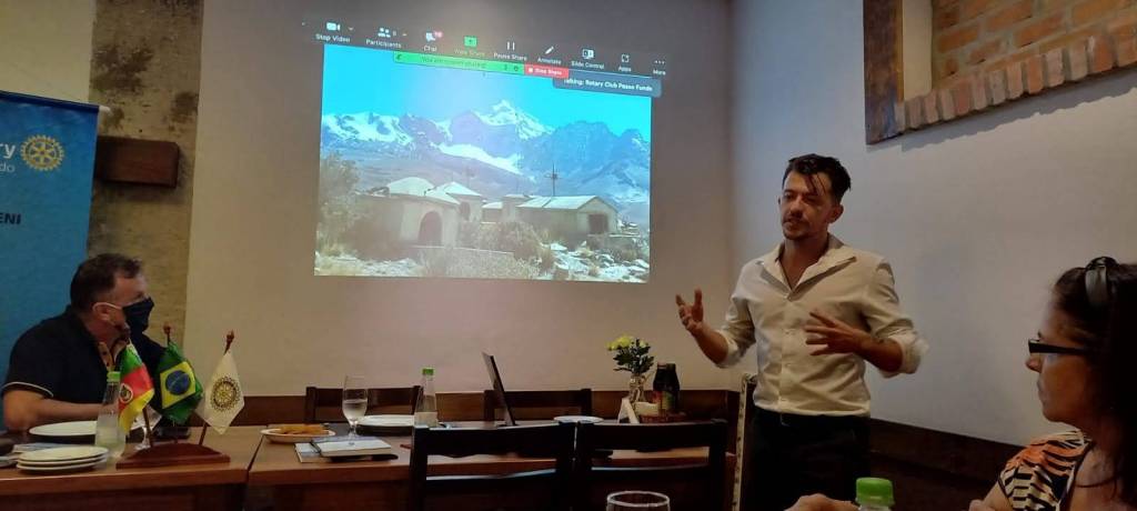 Na reuniào do dia 03/03/2022 o Rotary Club de Passo Fundo recebeu o empresário Manolo Frediani Lima para falar sobre suas viagens pelo mundo e especialmente sua experiëncia de ficar impedido de retornar ao Brasil durante os primeiros meses da pandemia. História que ele relata no sue livro "Caminhando pelo mundo".
