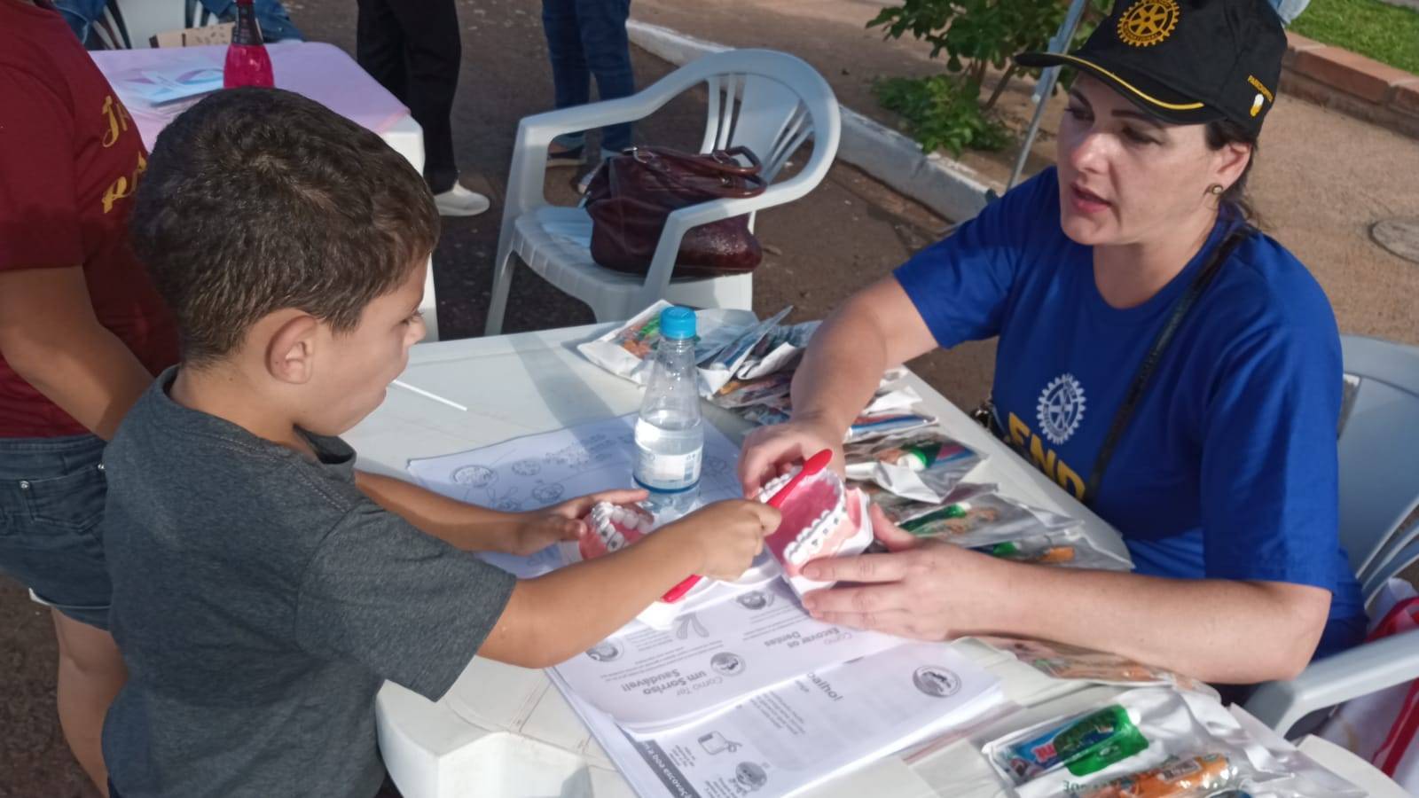 O Rotary Club de Estrela se fez presente com a companheira odontóloga Morjana Eidelwein e a companheira Leni Diedrich, orientando as mães e crianças sobre a importância da correta escovação dos dentes.