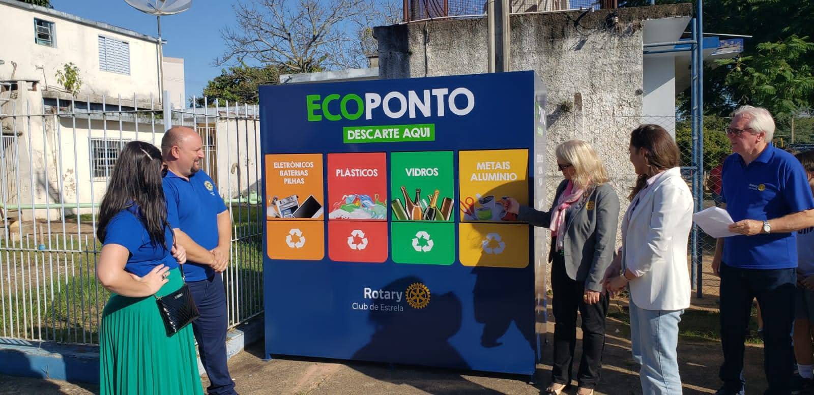 Com a presença da Governadora do Distrito, Evanisa Fátima R. Q. Melo, o Rotary Club de Estrela fez a entrega de um Eco Ponto para a comunidade de Estrela. Localizado em local de grande movimentação, será uma opção para as pessoas fazerem o descate correto de resíduos reciclaveis. O investimento do clube foi em torno de R$ 17.00,00.